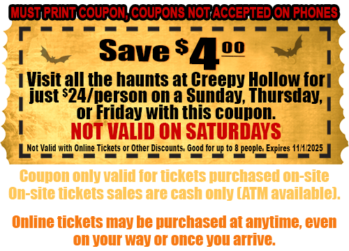 Please note that due to our location we are unable to process credit cards, debit cards or checks at the on-site ticket booth. You can use credit and debit cards when purchasing your tickets online. Click the buy tickets image above and to the right.